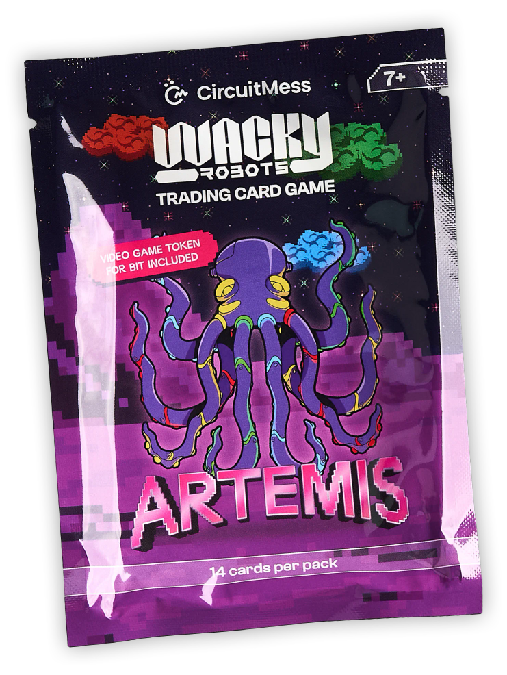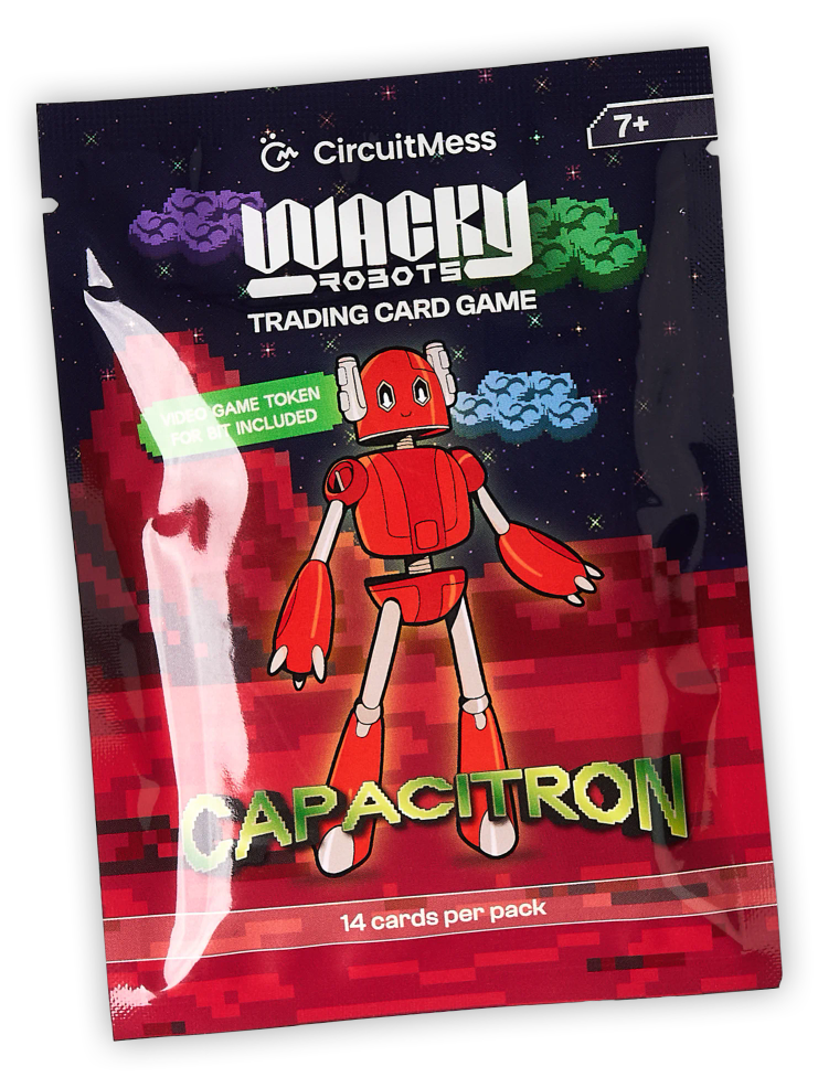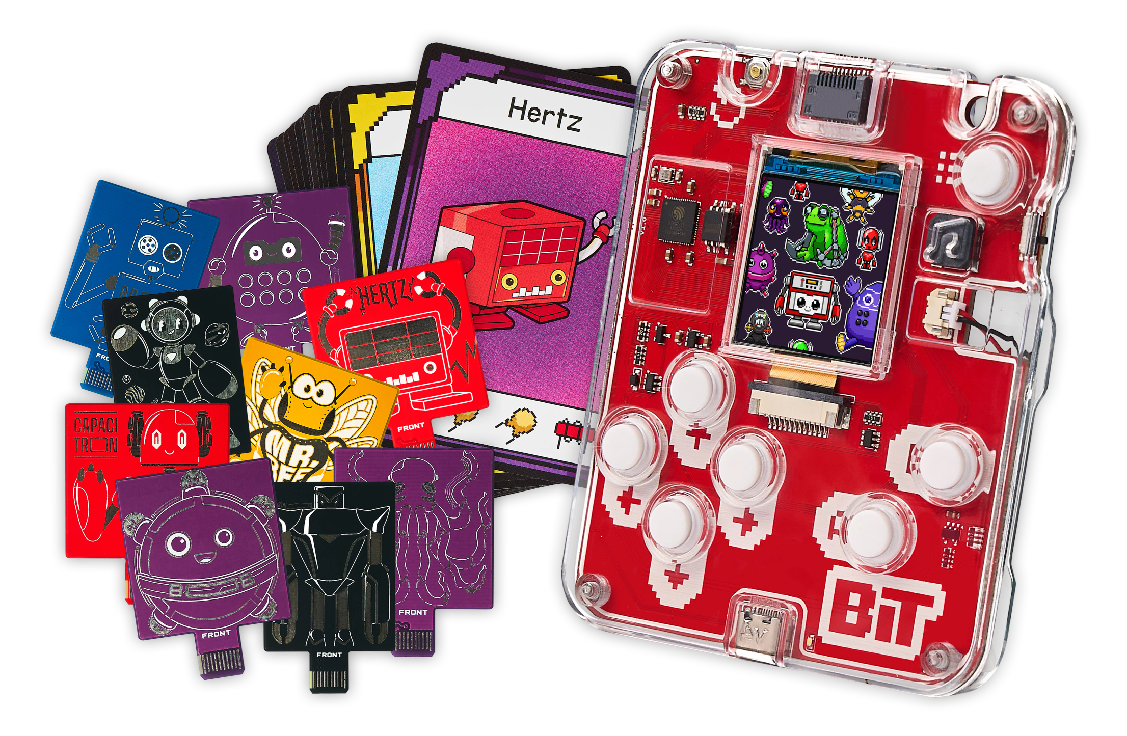 This bundle includes everything you need for the complete Bit experience: one Bit 2.0 DIY console kit, and all nine unique Wacky Robot Bit Expansion packs. In total, you'll get the console, 9 game tokens, and all 126 trading cards.