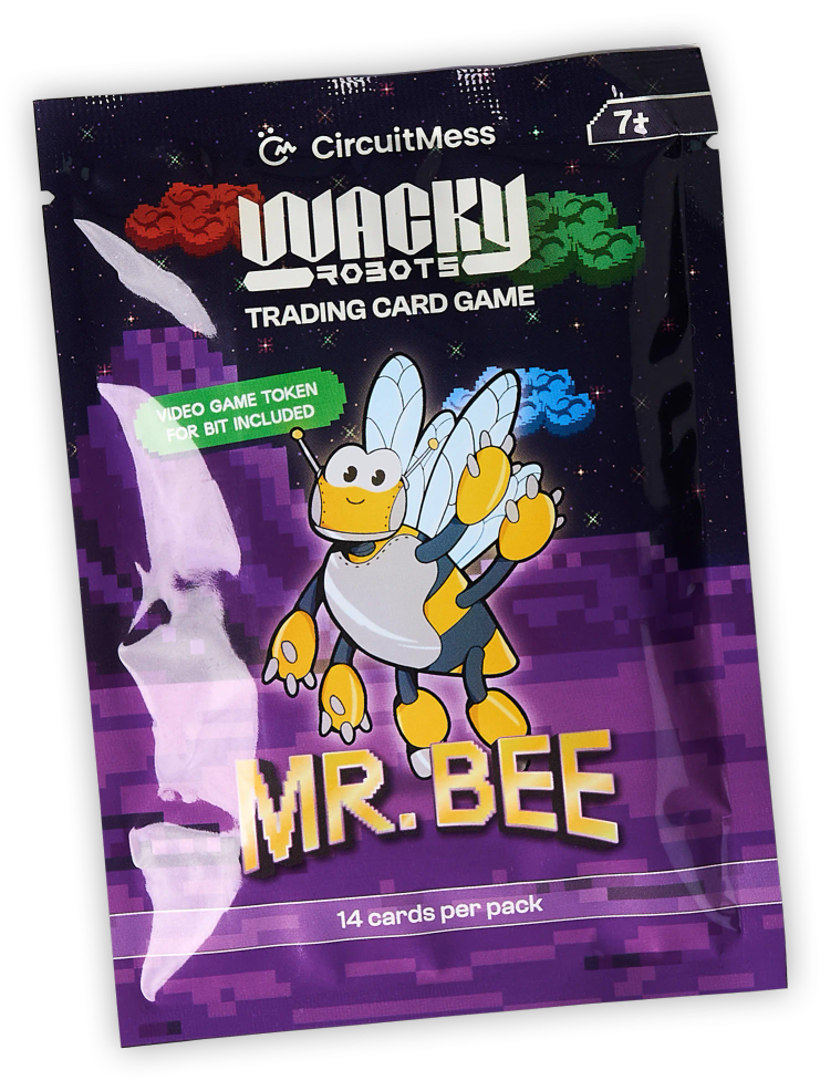 Reinforce your defenses with Mr. Bee of the Mechanicon faction! This pack comes with the Mr. Bee game token to unlock a new game on your Bit, and 14 cards that introduce powerful defensive strategies to your deck.