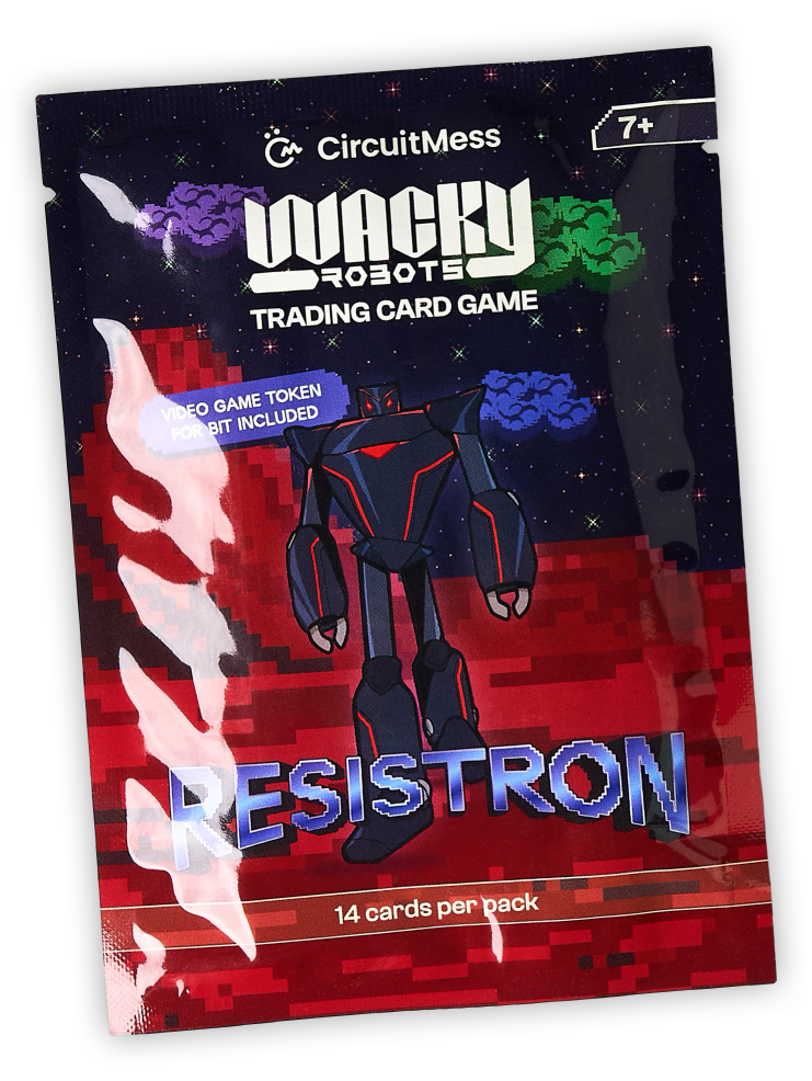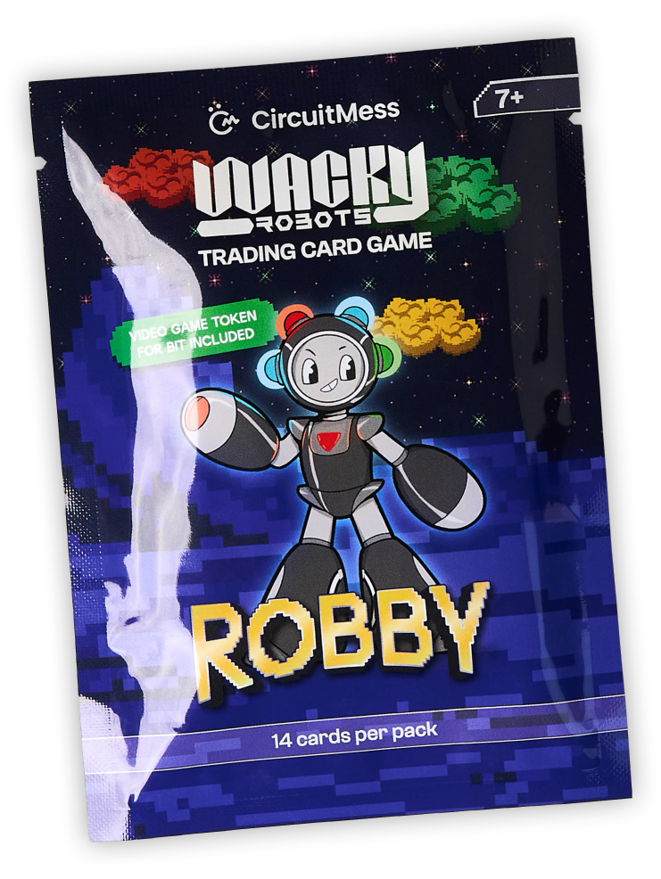 Outsmart your opponents with Robby, the strategic spy from Intellicorp! This pack comes with the Robby game token, unlocking a puzzle game on your Bit, plus 14 cards that give you a huge advantage in the card game.