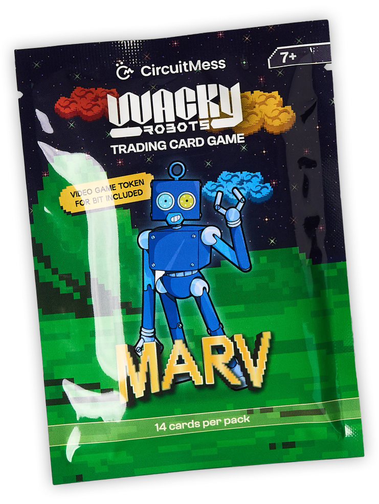 Unleash a dazzling spectacle with Marv of the Luminobots! This expansion includes the Marv game token, unlocking a fast-paced game on your Bit, and 14 trading cards to help you deal massive damage.