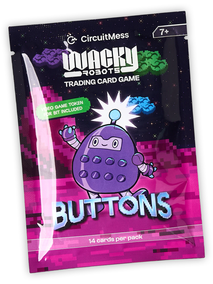 Get Buttons, the clever mimic from the Synthicate faction! This pack includes the Buttons game token to unlock a unique game on your Bit, plus 14 cards that let you copy your opponents' best moves in the card game.