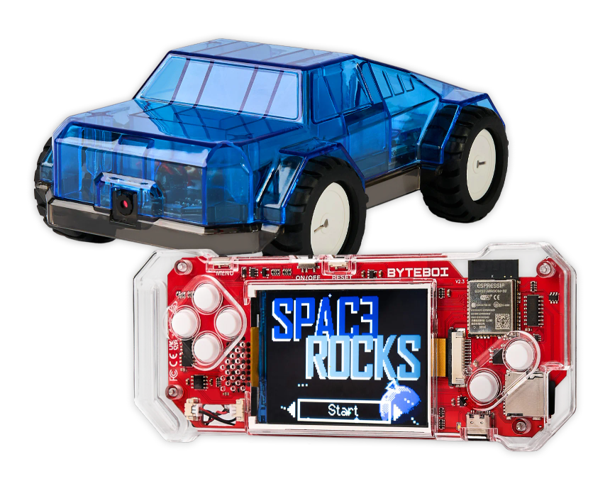 Build, code, drive & play – it's all here in one collection! The RC Bundle includes the Wheelson 2.0 self-driving car and the ByteBoi 2.0 game console. Build them both, then use ByteBoi to control Wheelson, learning about AI, electronics, and game development along the way.