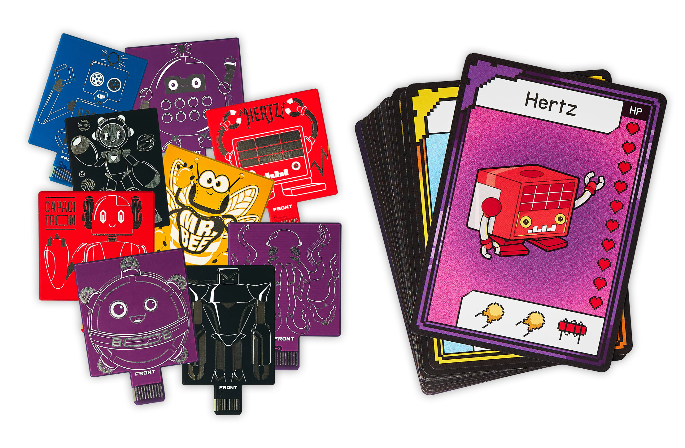 Harness the power of energy with Capacitron from the Rayforge guild! This expansion includes the Capacitron game token, unlocking an electrifying game on your Bit, and 14 cards that deal direct damage.