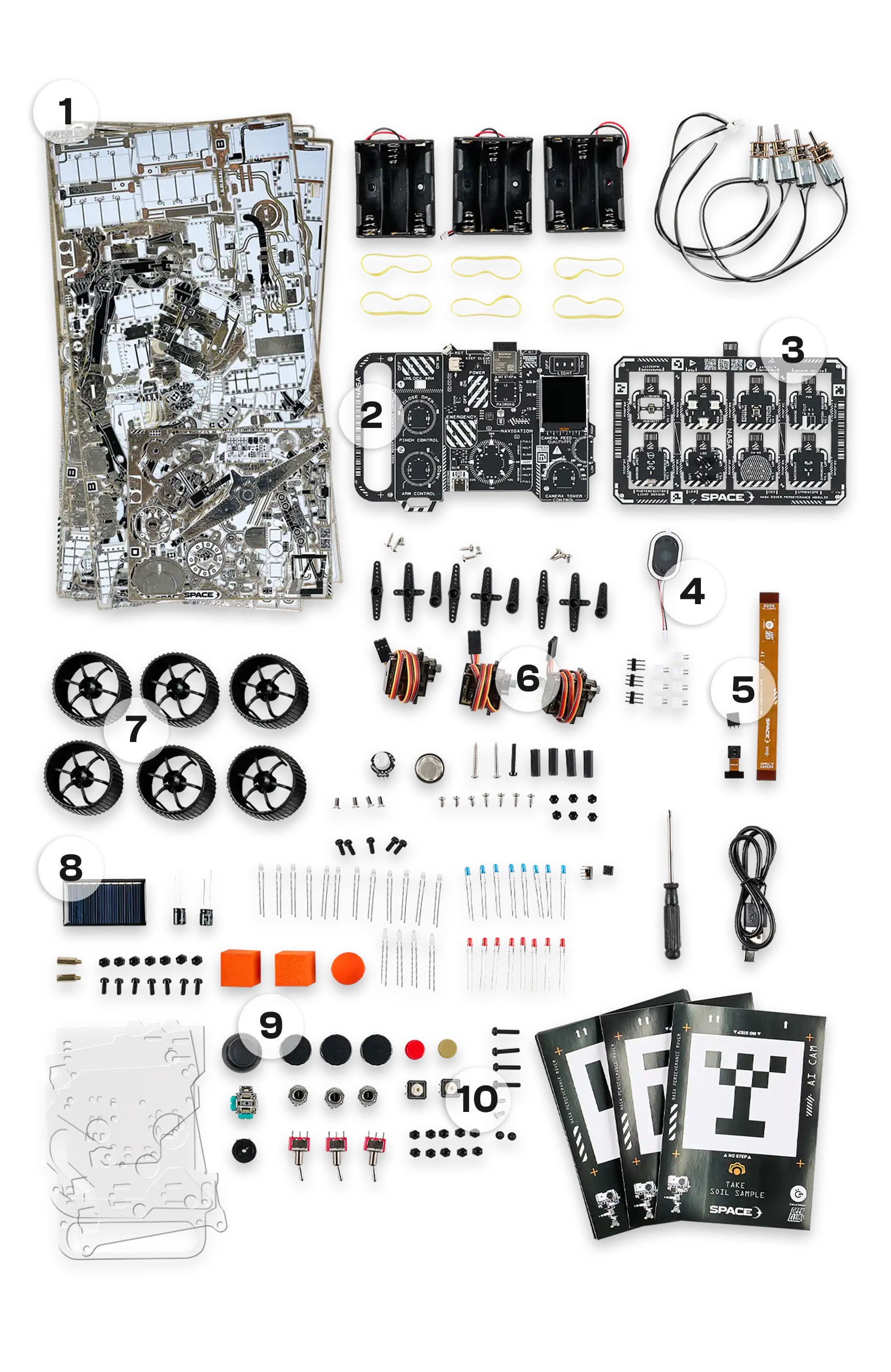 Take your STEM adventure to the next level! The Mars Exploration Bundle combines two NASA-themed products: the Mars Rover and the DIY Artemis Smartwatch. Build and code your own smartwatch, then use it to track your Rover missions and stay connected. It's the ultimate exploration combo!