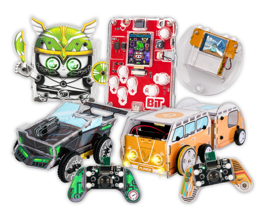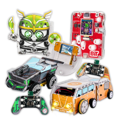Build a self-driving car, a game console, a virtual pet, a walking spider, a Bluetooth speaker, and more! This bundle includes our retro console Bit, and six big Wacky Robots. Learn all about electronics and unlock a secret game with each robot!